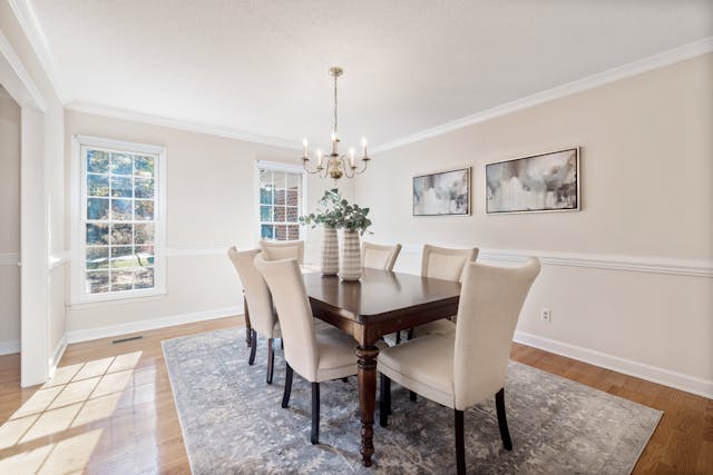 d) Space planning: Proper sizing ensures sufficient seating while leaving room for movement around the table.